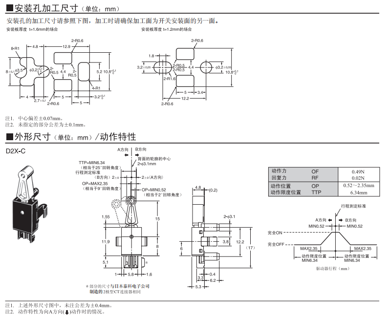 利用连接器用端子大大减少了配线作业 利用连接器实现单触配线。 开关的安装为单触式快速配合型。 安装方向自由的双向动作型。