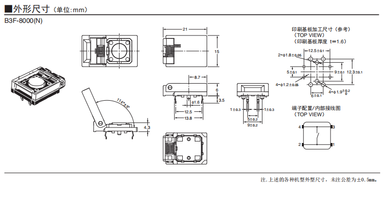 基板插入安装型,适用于防误操作的轻触式开关 用罩盖保护开关部,防止不小心按到开关。 利用回位弹簧,防止忘记关闭盖子。