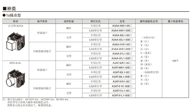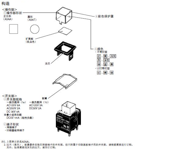 A3A系列按钮欧姆龙开关
