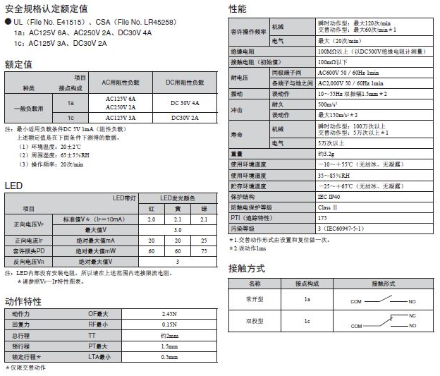 欧姆龙微动开关