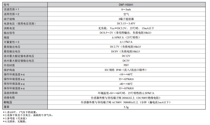 MEMS风量流速传感器D6F-V03A1
