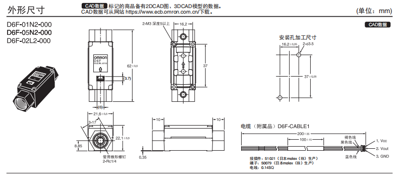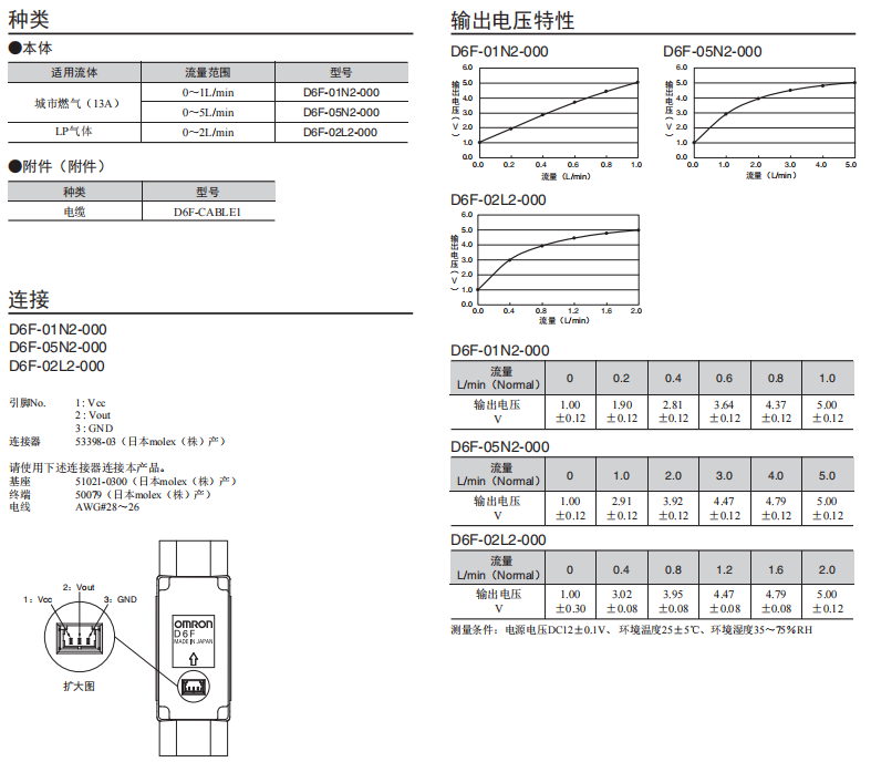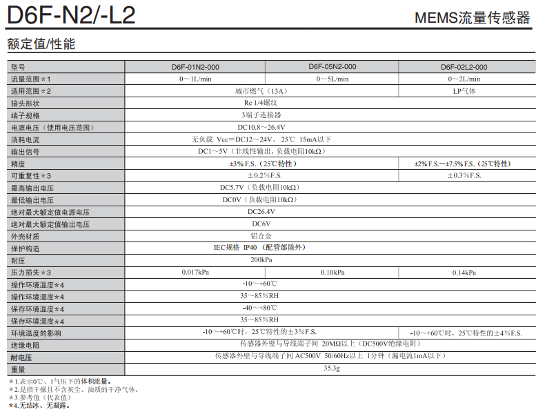 D6F-N2/-L2 高精度流量欧姆龙传感器